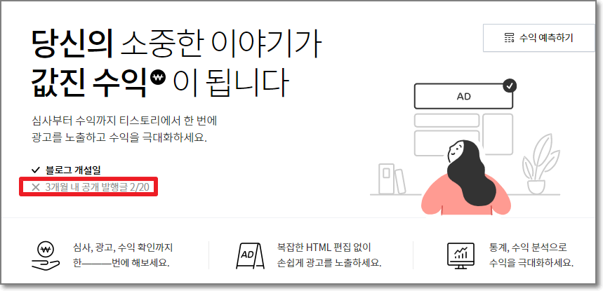 3개월간 공개발행글이 20개가 되어야만 수익이 유지가 되나요?