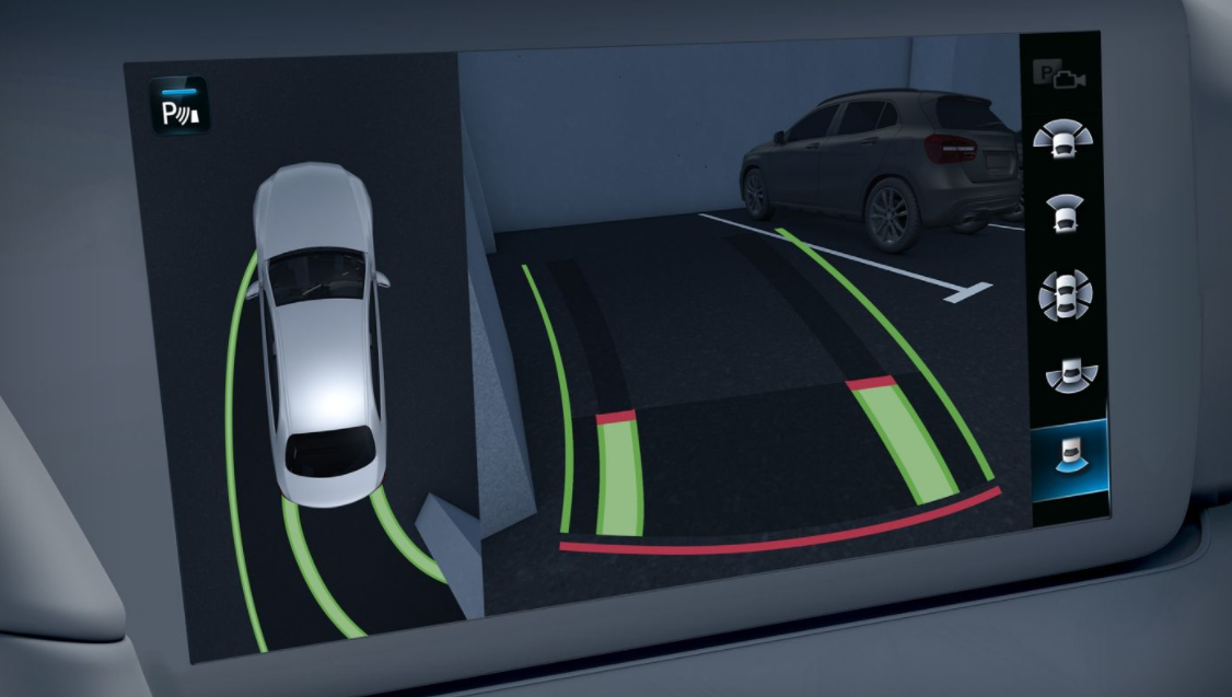 주차할 때 하늘에서 바라보는 듯한 뷰를 제공하는 360도 카메라가 포함되어있으며 후방카메라 역시 핸들을 돌림에 따라 미리 움직이는 곳을 알려주는 주차 패키지가 적용되어 있고 안정성을 위한 무릎 에어백도 준비가 되어있습니다.