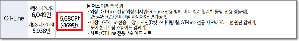 GT-line은 5,950 만원으로 주행거리는 420km 전후로 알려져 있습니다.