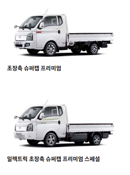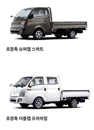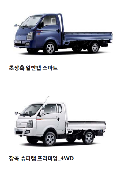| 장축 일반캡_4WD전용 | 장축 슈퍼캡 | 장축 더블캡 | 초장축 일반캡 | 초장축 슈퍼캡 | 초장축 더블캡 | |