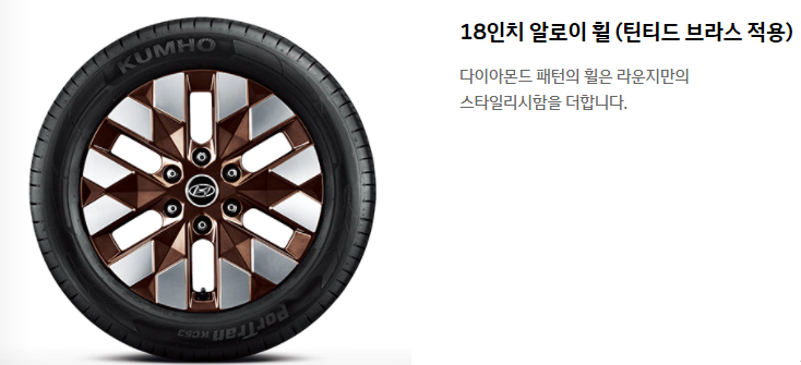 또한 고급스러운 디자인의 18인치 휠과 범퍼에 들어간 전후면 디테일 등이 차량의 완성도를 더하고 있습니다.