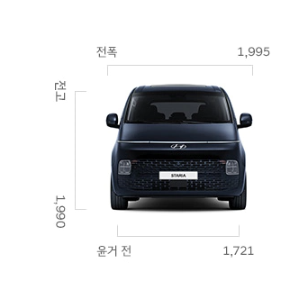 스타리아는 기본적으로 승합차라는 조건에 걸맞게 1,990mm의 높은 전고를 가지고 있습니다. 전폭 또한 1,995mm이며 전장은 5,255mm로 몹시 여유가 있는 스펙을 갖추고 있는데요. 덕분에 실내 높이 또한 1,379mm나 되어 사용자의 체구와 상관없이 충분히 안락한 장거리 주행이 가능한 수준입니다.