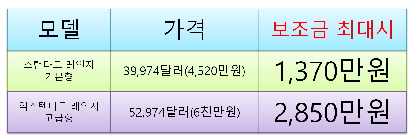 기본적으로 F150의 미국 판매가를 확인해보면 기본형은 39,974달러로 한화로 따지면 4천5백만 원이 웃도는 수준입니다. 고급형으로 넘어가면 52,974달러로 6천만 원에 육박하는 부담되는 가격이지요. 이 가격만 놓고 봐도 기존의 포드에서 같은 모델로 나온 내연차인 F150랩터와의 가격차가 3천만원정도 납니다. 랩터는 7300만원이거든요. 하지만 라이트닝은 국내에서 친환경 차량에 대한 보조금을 챙긴다면 엄청난 가격을 보실 수 있을 텐데요. 서울 기준으로 국가 보조금 2,100만 원과 지자체 1,050만 원을 챙겨본다면 실 구매가는 천 삼백 오십만 원 수준으로 떨어집니다.