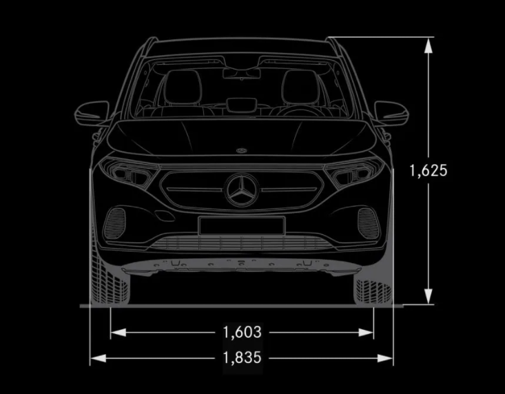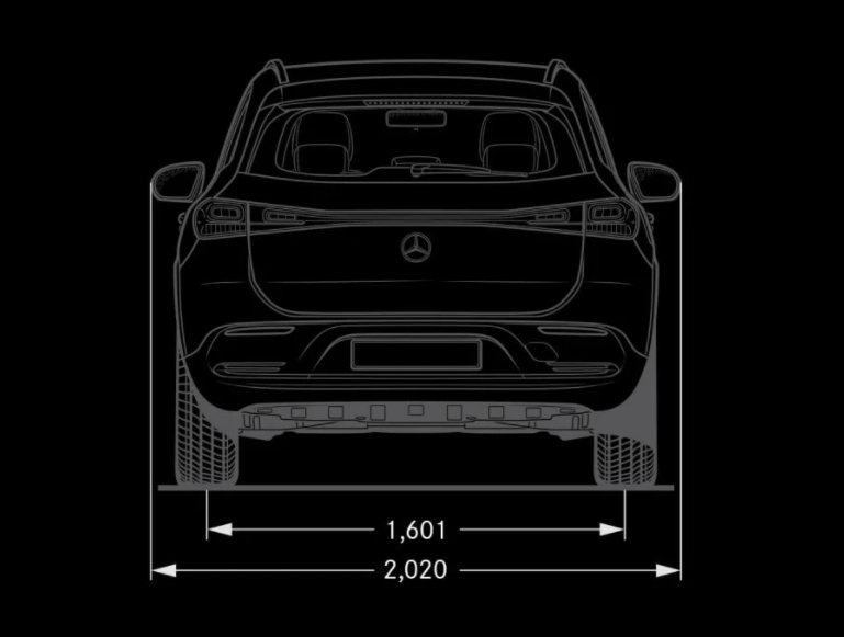 그리고 EQA의 제원은 전폭은 사이드미러 포함 2020mm이며 전고는 1625mm, 전장은 4770mm입니다.