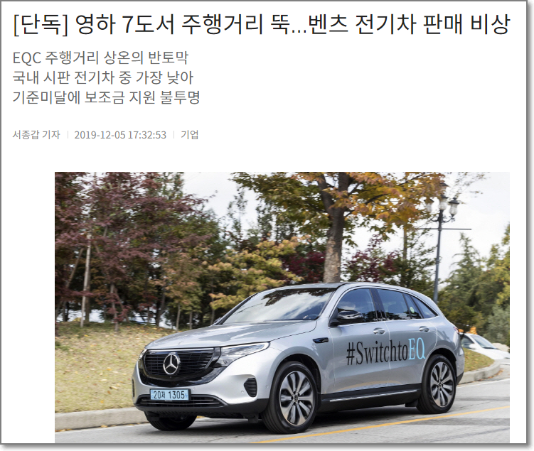 심지어 벤츠 출시 전기차 전 모델인 1억 500만 원짜리 EQC의 경우 고작 171km 밖에 되지 않는 저온 주행거리로 세간의 웃음거리가 되곤 했는데요.