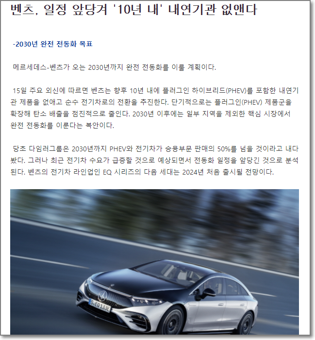 이제 외국에서는 점차적으로 내연기관 차량의 판매를 완전히 중단할 예정이라고 합니다.
