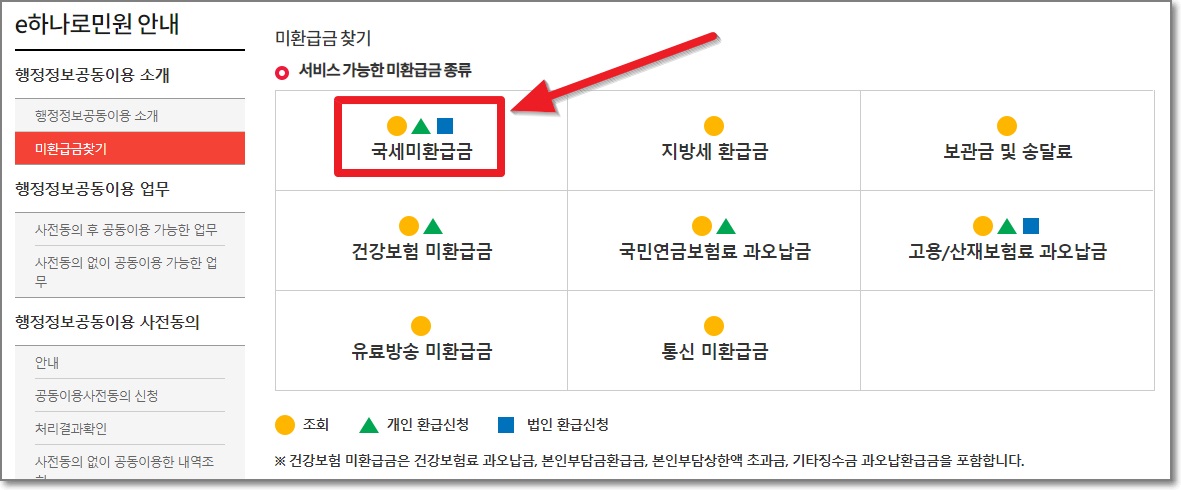 미수령 국세환급금 조회하는 방법