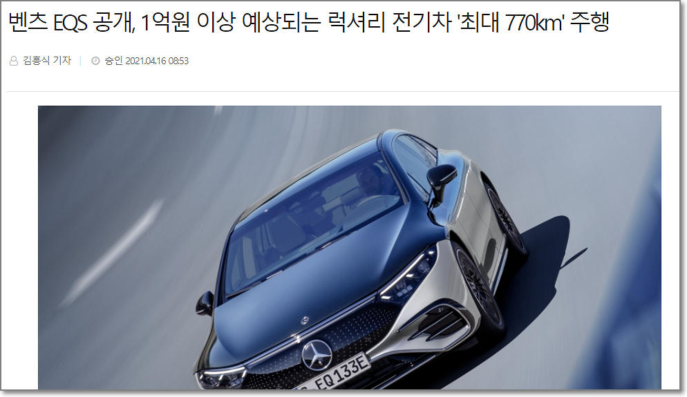 벤츠의 차급별 네이밍은 C클래스, E클래스, S클래스로 많이 알려져있는데요. A클래스는 소형 모델에 붙는 이름입니다. 그리고 벤츠는 전기차에 EQ를 붙이는 네이밍 전략을 쓰고 있는데요. EQ에 S클래스의 S를 붙인 EQS는 1억원이 넘는 럭셔리 전기차로 알려져 있습니다.