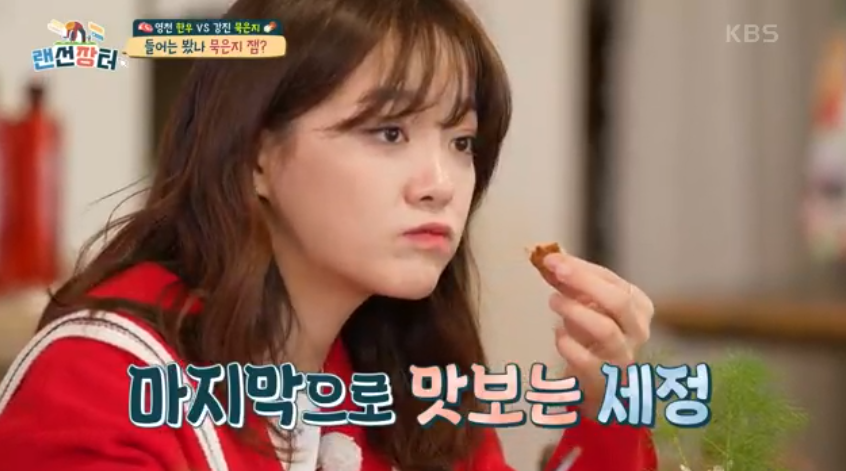 홍현희는 들기름을 더한 묵은지 볶음을 선보였고, 송가인은 즉석 묵은지 무침 등을 선보이며 강진 묵은지 홍보를 이어나갔습니다. 송가인은 수박과 묵은지를 함께 맛보기를 추천했고 홍현희 김세정이 수박과 묵은지를 먹어보더니 놀라운 궁합에 깜짝 놀랐습니다.