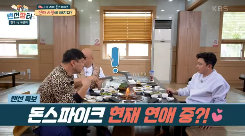 방송 중 안정환은 돈스파이크에게 "요즘 연애한다던데?"라며 말했자 잠시 뒤를 돌아보면서 방송용 스케치북에 쓰여있었냐고 묻더니 있다고 했습니다