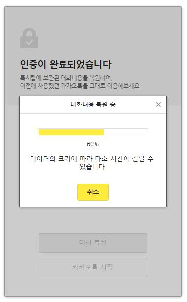 톡 서랍 복원도 1분정도도 안걸리는 것 같습니다. 상당히 빠릅니다.