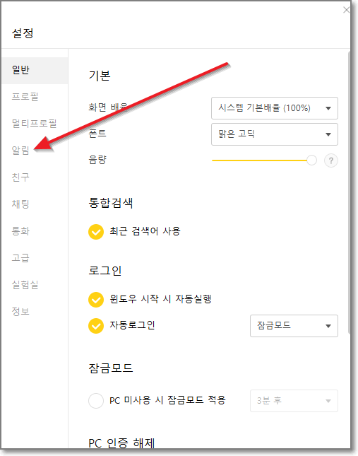 둘, PC버전에서 알림 끄기
