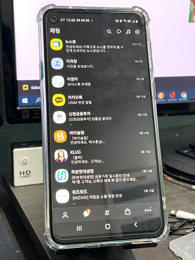 카카오톡이 실행되었습니다. 휴대폰의 작은 자판을 치는 것보다 키보드로 하는 카카오톡은 또 다른 맛이 있습니다. 그리고 파일 주고받기도 바로바로 열어볼 수 있어서 편하고요.