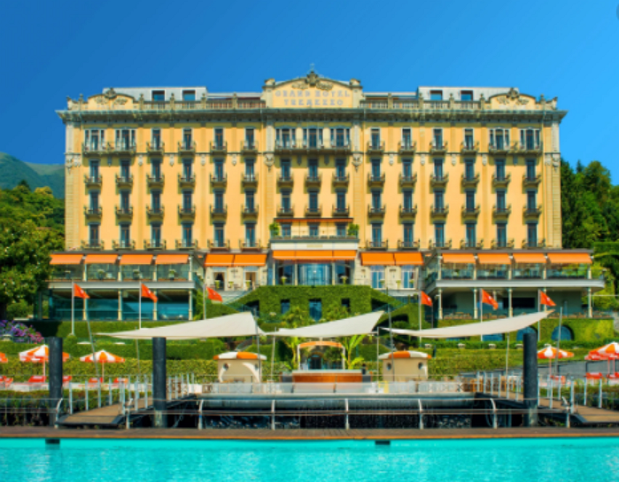 유럽 국경이 해외 여행객들에게 다시 개방되기 시작하면서 첫 번째 목적지는 꼬모 호수 유역에 위치한 상징적 인 아르누보 호텔 인 Grand Hotel Tre Mezzo입니다.