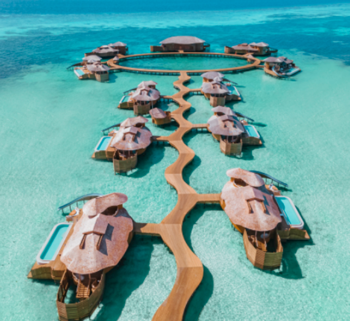 다른 가족 친화적 인 명소로는 수상 영화관, 별을 바라보는 전망대, 아이스크림과 초콜릿 룸이 있습니다. 각 빌라에는 개폐식 지붕이 있어 아이들이 별빛 아래에서 귀엽게 졸 수 있습니다..