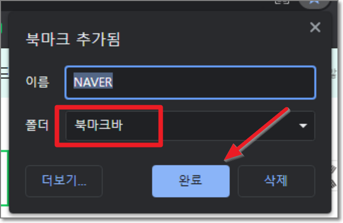 북마크 바에 네이버가 추가된 것을 볼 수 있습니다.