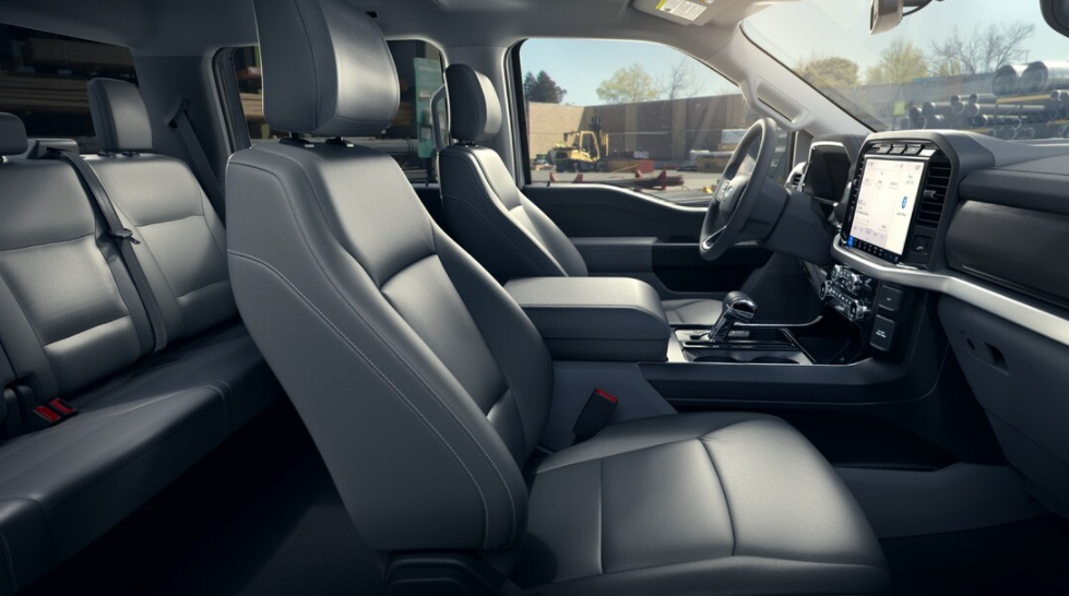 F150의 실내는 15.5인치의 세로형 터치스크린 디스플레이와 계기판 쪽에는 12인치의 디지털 디스플레이가 적용되었습니다. 메인 디스플레이를 통해서 안드로이드 오토나 애플 카플레이 같은 스마트폰 연동 서비스를 이용할 수 있으며 F150 차량에 기본적으로 아마존 알렉사를 음성인식 시스템으로 탑재했습니다. 계기판 쪽에서는 고속도로 주행 보조와 회생제동 발전량 등의 차량과 관련된 각종 정보를 제공합니다.